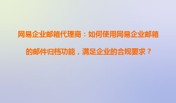 2025-11-01網易企業郵箱代理商:如何使用網易企業郵箱的郵件歸檔功能,滿足企業的合規要求 一、郵件歸檔功能的重要性 在數字化辦公日益普及的今天,企業郵件不僅是日常溝通的工具,更是重要的...