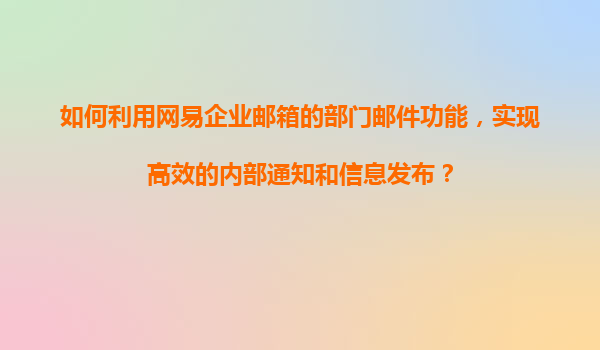 2025-11-21如何利用網易企業(yè)郵箱的部門郵件功能,實現(xiàn)高效的內部通知和信息發(fā)布? 一、引言 在現(xiàn)代企業(yè)管理中,高效的信息傳遞是提升團隊協(xié)作效率的關鍵。網易企業(yè)郵箱作為國內領先的企業(yè)通信工具,其強大的“部門郵...
