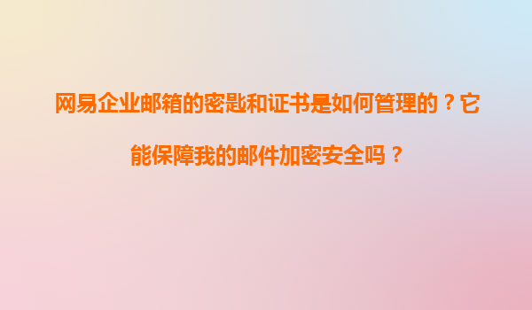 2025-11-21網易企業(yè)郵箱的密匙和證書是如何管理的?它能保障我的郵件加密安全嗎? 網易企業(yè)郵箱的密鑰與證書管理機制 網易企業(yè)郵箱采用行業(yè)領先的加密技術,通過多層次的...