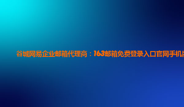 谷城網易企業郵箱代理商:163郵箱免費登錄入口官網手機版