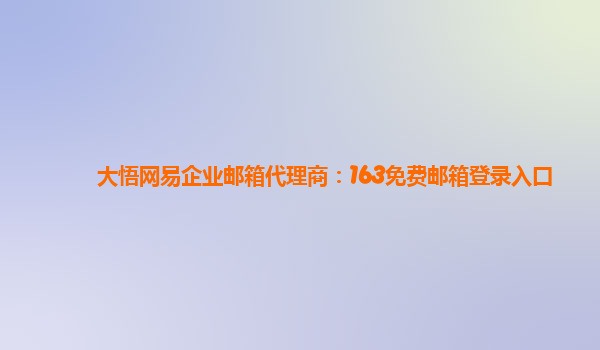 大悟網易企業郵箱代理商:163免費郵箱登錄入口
