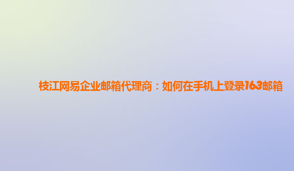 枝江網易企業郵箱代理商:如何在手機上登錄163郵箱