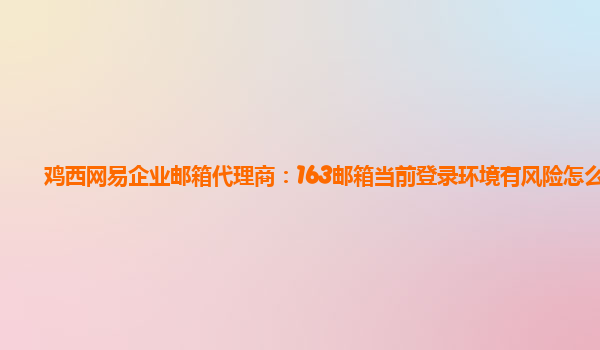 網易企業郵箱代理商:163郵箱當前登錄環境有風險怎么辦
