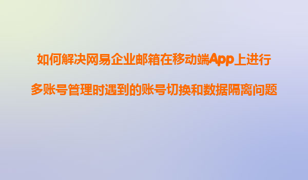2025-11-09如何解決網(wǎng)易企業(yè)郵箱在移動端App上進行多賬號管理時遇到的賬號切換和數(shù)據(jù)隔離問題? 一、網(wǎng)易企業(yè)郵箱的多賬號管理現(xiàn)狀與用戶痛點 網(wǎng)易企業(yè)郵箱作為國內(nèi)領先的企業(yè)級郵件服務商,其移動端App功能完備性...