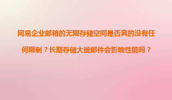 2025-11-10網(wǎng)易企業(yè)郵箱的無限存儲空間是否真的沒有任何限制?長期存儲大量郵件會影響性能嗎? 一、網(wǎng)易企業(yè)郵箱的“無限存儲”究竟意味著什么? 網(wǎng)易企業(yè)郵箱在宣傳中提到的“無限存儲”并非絕對無限制,而是基...
