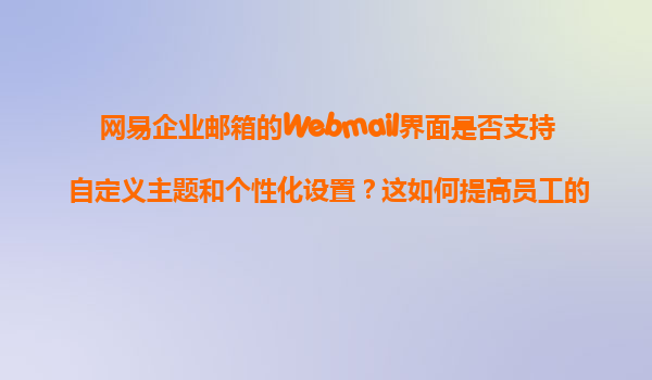 2025-11-10網(wǎng)易企業(yè)郵箱的Webmail界面是否支持自定義主題和個性化設置?這如何提高員工的使用滿意度? 在數(shù)字化轉(zhuǎn)型的浪潮中,企業(yè)郵箱作為企業(yè)內(nèi)外溝通的核心工具,其用戶體驗直接影響著員工的工作效率和滿意度。網(wǎng)易企...