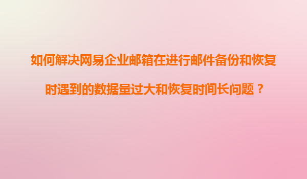 2025-11-10如何高效解決網(wǎng)易企業(yè)郵箱郵件備份與恢復數(shù)據(jù)量過大及恢復時間長問題 在企業(yè)日常運營中,郵件作為重要的溝通工具,其數(shù)據(jù)備份和恢復的效率和穩(wěn)定性直接關系到企業(yè)的工作流程和信息安全。網(wǎng)易企業(yè)郵箱憑借其強大的技...