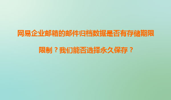 2025-11-09網(wǎng)易企業(yè)郵箱郵件歸檔數(shù)據(jù)的存儲期限及永久保存方案解析 一、網(wǎng)易企業(yè)郵箱的郵件歸檔存儲機制 網(wǎng)易企業(yè)郵箱作為國內(nèi)領先的企業(yè)級郵件服務提供商,其郵件歸檔功能滿足企業(yè)對郵件數(shù)據(jù)合規(guī)管理的核心需求。根據(jù)網(wǎng)...