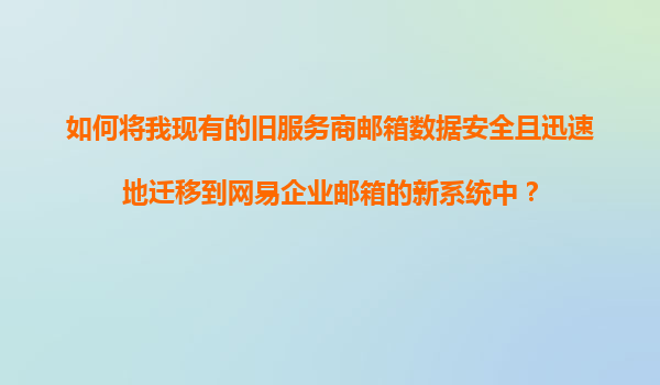 2025-11-07如何安全高效地將舊服務(wù)商郵箱數(shù)據(jù)遷移至網(wǎng)易企業(yè)郵箱 一、遷移前的準(zhǔn)備工作 郵箱數(shù)據(jù)遷移涉及企業(yè)核心通信資產(chǎn),需謹(jǐn)慎規(guī)劃。以下是關(guān)鍵準(zhǔn)備步驟: 數(shù)據(jù)備份:在舊郵箱系統(tǒng)中全量備份郵件、通訊錄、日程等數(shù)...