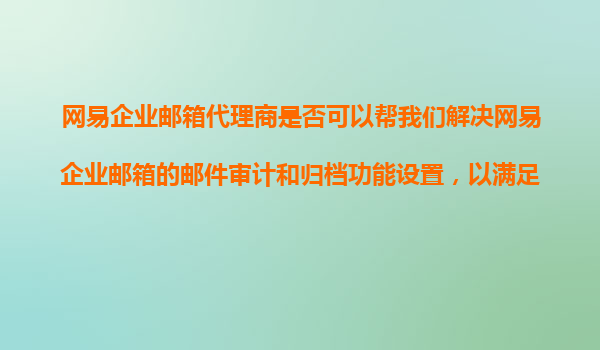 4008-020-360 網(wǎng)易企業(yè)郵箱代理商是否可以幫我們解決網(wǎng)易企業(yè)郵箱的郵件審計(jì)和歸檔功能設(shè)置,以滿足合規(guī)性要求? 一、網(wǎng)易企業(yè)郵箱的核心優(yōu)勢(shì) 網(wǎng)易企業(yè)郵箱作為國(guó)內(nèi)領(lǐng)先的企...