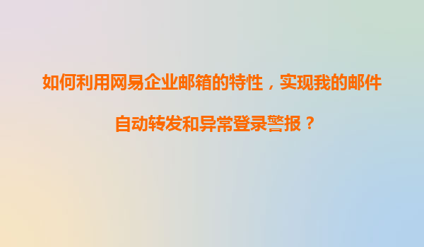 2025-11-06如何利用網(wǎng)易企業(yè)郵箱的特性,實(shí)現(xiàn)我的郵件自動(dòng)轉(zhuǎn)發(fā)和異常登錄警報(bào)? 網(wǎng)易企業(yè)郵箱的優(yōu)勢(shì) 作為國(guó)內(nèi)領(lǐng)先的企業(yè)郵箱服務(wù)提供商,網(wǎng)易企業(yè)郵箱憑借其穩(wěn)定性、安全性和豐富的功能特性贏得了眾多企業(yè)的青睞。其中...