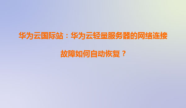 2026-01-09華為云國際站:華為云輕量服務(wù)器的網(wǎng)絡(luò)連接故障如何自動(dòng)恢復(fù)? 一、引言:輕量服務(wù)器的網(wǎng)絡(luò)穩(wěn)定性挑戰(zhàn) 在云計(jì)算時(shí)代,輕量級(jí)服務(wù)器因其快速部署和成本優(yōu)勢(shì)成為中小企業(yè)及開發(fā)者的首選。然而,網(wǎng)絡(luò)連接的穩(wěn)...