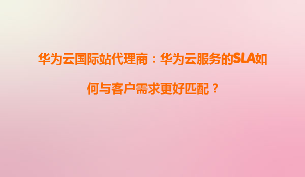 2026-01-09華為云國際站代理商:華為云服務(wù)的SLA如何與客戶需求更好匹配? 引言 在全球云計(jì)算市場(chǎng)競(jìng)爭(zhēng)日益激烈的背景下,華為云憑借其技術(shù)實(shí)力和全球化布局,已成為企業(yè)數(shù)字化轉(zhuǎn)型的重要合作伙伴。作為華為云國際站代...