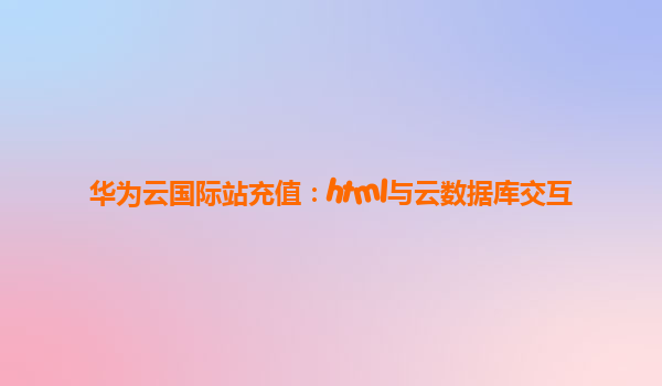 2026-01-01華為云國際站充值:HTML與云數據庫交互實踐 引言 在數字化時代,云計算服務已成為企業全球業務拓展的核心支撐。華為云國際站作為領先的云服務平臺,為全球用戶...