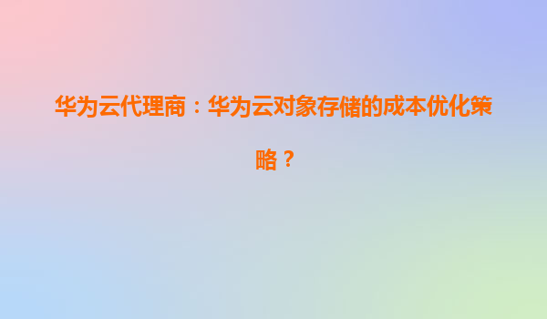 2026-01-08華為云代理商:華為云對象存儲的成本優化策略 引言 隨著企業數字化轉型的加速,數據存儲需求呈現爆發式增長。如何在保障數據安全性和可用性的同時,有效控制存儲成本,成為企業關注的焦點。作為國內領...