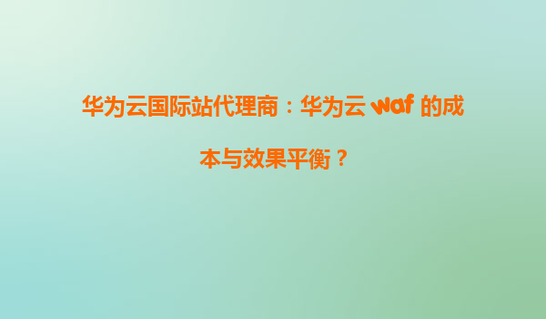 2026-01-08華為云國際站代理商:華為云WAF的成本與效果平衡 引言 在當今數字化時代,網絡安全已成為企業運營的核心問題之一。Web應用防火墻(WAF)作為防護Web應用安全的關鍵工具,其成本與效果的平衡一直是...