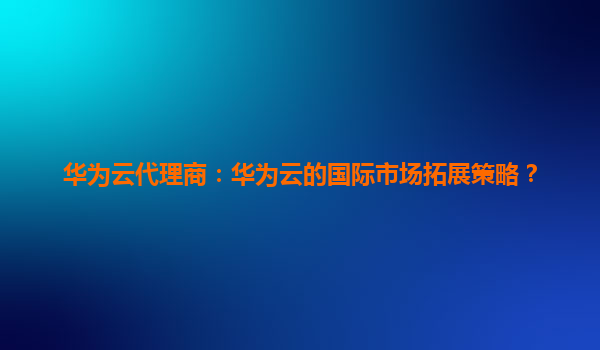 2026-01-07華為云代理商:華為云的國(guó)際市場(chǎng)拓展策略 引言 隨著全球數(shù)字化轉(zhuǎn)型的加速,云計(jì)算成為企業(yè)IT基礎(chǔ)設(shè)施的核心。作為中國(guó)領(lǐng)先的云服務(wù)提供商,華為云憑借其技術(shù)實(shí)...