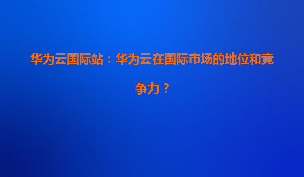 2026-01-08華為云國(guó)際站:華為云的國(guó)際市場(chǎng)競(jìng)爭(zhēng)對(duì)手分析 一、引言 隨著全球云計(jì)算市場(chǎng)的快速發(fā)展,華為云作為中國(guó)領(lǐng)先的云服務(wù)提供商,正積極拓展國(guó)際市場(chǎng)。然而,在國(guó)際市場(chǎng)上,華為云面臨著來(lái)自AWS、微軟A...