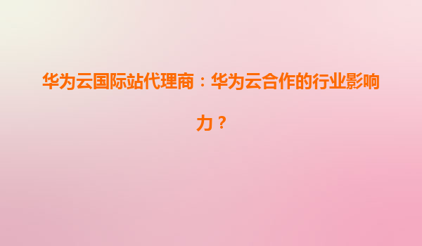 2026-01-07華為云國際站代理商:華為云合作的行業影響力 引言 在全球數字化轉型的浪潮中,云計算作為核心技術之一,正在深刻改變各行各業的運營模式。華為云作為全球領先的云服務...