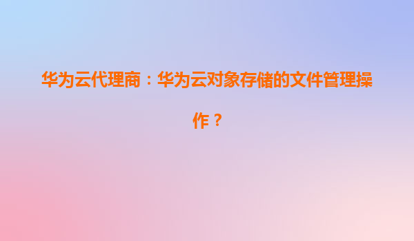 2026-01-07華為云代理商:華為云對象存儲的文件管理操作指南 一、華為云對象存儲(OBS)概述 華為云對象存儲服務(ObjectStorageService,簡稱OBS)是一種高可靠、高性能、安全合規的云存儲服務...