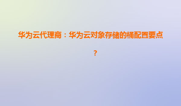 2026-01-07華為云代理商:華為云對象存儲的桶配置要點 引言 隨著云計算技術的快速發展,對象存儲作為一種高效、可擴展的存儲方案,被廣泛應用于企業數據管理。華為云對象存儲(OBS)作為華為云的核心服務之一,以其...