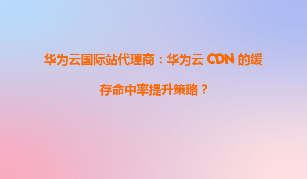 2026-01-07華為云國際站代理商:華為云CDN的緩存命中率提升策略 引言 在當今數字化時代,內容分發網絡(CDN)已成為提升網站性能和用戶體驗的關鍵技術。作為華為云國際站代理商,我們深知緩存命中率是衡量CDN效能的...