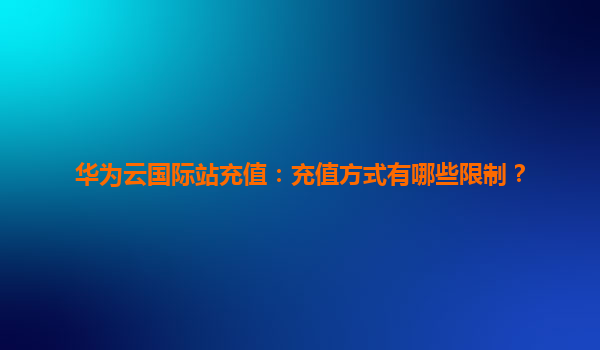 2026-01-06華為云國際站充值:充值方式有哪些限制? 引言 隨著云計算技術的快速發展,越來越多的企業選擇將業務遷移到云端。華為云作為全球領先的云服務提供商,憑借其強大的技術實力和全球化的服務...