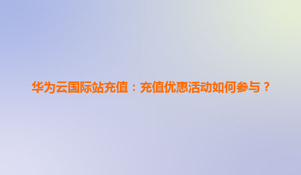 2026-01-06華為云國際站充值:充值優惠活動如何參與? 隨著云計算技術的快速發展,越來越多的企業選擇將業務遷移至云端。華為云作為全球領先的云服務提供商,憑借其強大的技術實力和優質的服務,贏得了眾多用戶的...