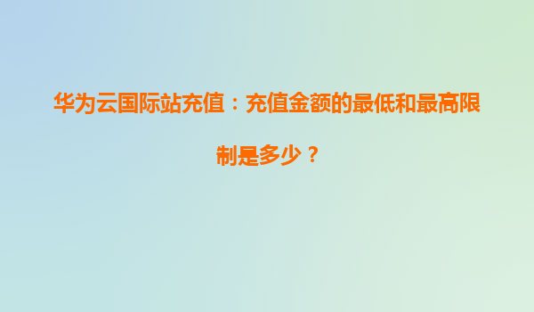 2026-01-06華為云國際站充值指南:金額限制與靈活支付方案解析 一、華為云國際站充值金額限制詳解 作為全球領先的云計算服務提供商,華為云國際站為滿足不同規模企業的需求,制定了靈活的充值政策。以下是當...