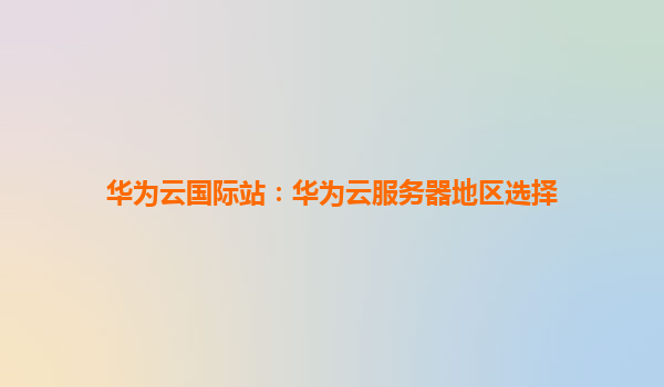 2026-01-04華為云國際站:華為云服務器地區選擇指南 引言 隨著全球數字化轉型的加速,云計算服務成為企業拓展國際業務的重要支撐。華為云作為全球領先的云服務提供商,通過覆蓋廣泛的區域節點和強大的技...
