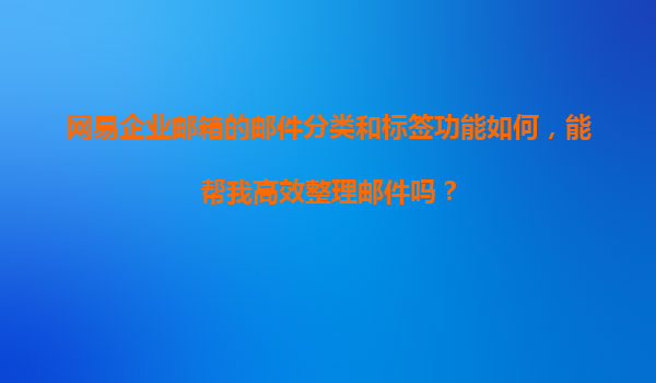 2025-11-12網(wǎng)易企業(yè)郵箱的郵件分類和標(biāo)簽功能如何,能幫我高效整理郵件嗎? 網(wǎng)易企業(yè)郵箱的郵件分類與標(biāo)簽功能解析 在信息爆炸的時代,高效管理郵件已成為職場人士的必修課。網(wǎng)易企業(yè)郵箱憑借...