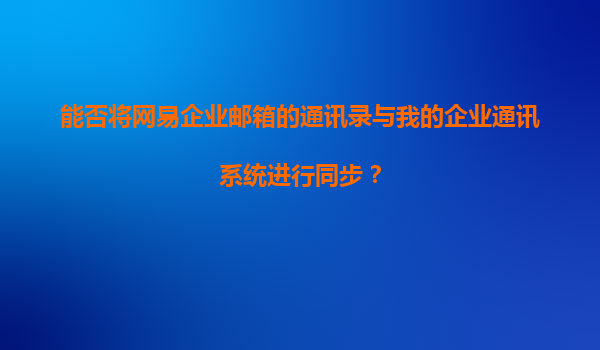 2025-11-12能否將網(wǎng)易企業(yè)郵箱的通訊錄與我的企業(yè)通訊系統(tǒng)進(jìn)行同步? 一、網(wǎng)易企業(yè)郵箱通訊錄同步的可行性分析 網(wǎng)易企業(yè)郵箱提供了開放API接口和相關(guān)集成工具,支持與企業(yè)內(nèi)部通訊系統(tǒng)進(jìn)行數(shù)據(jù)同步。通...