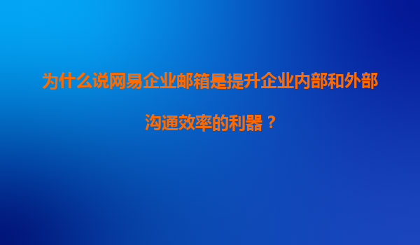 2025-11-12為什么說網(wǎng)易企業(yè)郵箱是提升企業(yè)內(nèi)部和外部溝通效率的利器? 在數(shù)字化時代,高效的企業(yè)溝通是企業(yè)成功的關(guān)鍵因素之一。無論是內(nèi)部協(xié)作還是與外部合作伙伴、客戶的溝通,一個穩(wěn)定、安全且功能豐富的企業(yè)郵箱系統(tǒng)...