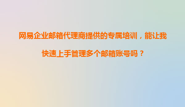 2025-11-12網(wǎng)易企業(yè)郵箱代理商專屬培訓(xùn):助力高效管理多個郵箱賬號 一、為什么選擇網(wǎng)易企業(yè)郵箱? 網(wǎng)易企業(yè)郵箱作為國內(nèi)領(lǐng)先的企業(yè)級郵件服務(wù)提供商,憑借以下核心優(yōu)勢,成為眾多企業(yè)的首選: 穩(wěn)定可靠的系統(tǒng)架...