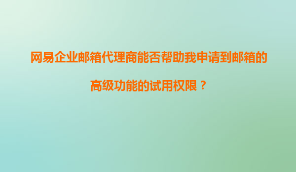 2025-11-11網(wǎng)易企業(yè)郵箱代理商能否幫助我申請(qǐng)到郵箱的高級(jí)功能試用權(quán)限? 在數(shù)字化辦公時(shí)代,企業(yè)郵箱已成為高效溝通與協(xié)作的核心工具之一。作為國內(nèi)領(lǐng)先的企業(yè)郵箱服務(wù)提供商,網(wǎng)易企業(yè)郵箱憑借其穩(wěn)定性、安全性及豐...