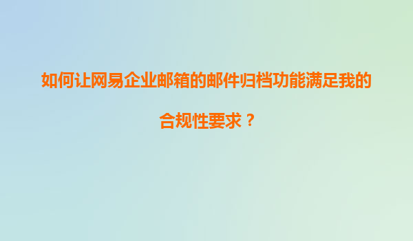 2025-11-11網(wǎng)易企業(yè)郵箱郵件歸檔功能如何滿足合規(guī)性要求 隨著企業(yè)對(duì)數(shù)據(jù)安全和合規(guī)管理的重視程度不斷提升,郵件歸檔已成為企業(yè)管理中不可或缺的一環(huán)。作為國內(nèi)領(lǐng)先的企業(yè)郵箱服務(wù)提供商,網(wǎng)易企業(yè)郵箱憑借強(qiáng)大的郵件歸檔功...