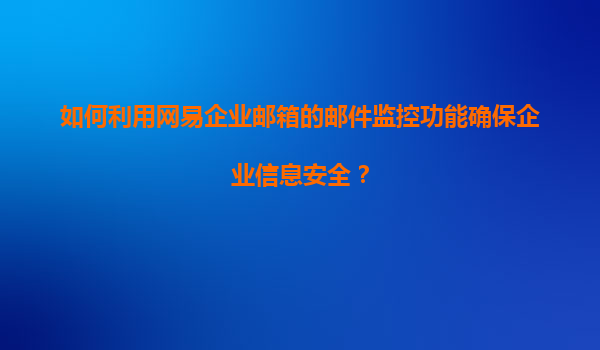 2025-11-11如何利用網(wǎng)易企業(yè)郵箱的郵件監(jiān)控功能確保企業(yè)信息安全? 網(wǎng)易企業(yè)郵箱的安全優(yōu)勢(shì) 在當(dāng)前的數(shù)字化時(shí)代,企業(yè)信息安全成為了每個(gè)企業(yè)關(guān)注的重點(diǎn)。網(wǎng)易企業(yè)郵箱作為國(guó)內(nèi)領(lǐng)先的企業(yè)郵箱服務(wù)提...