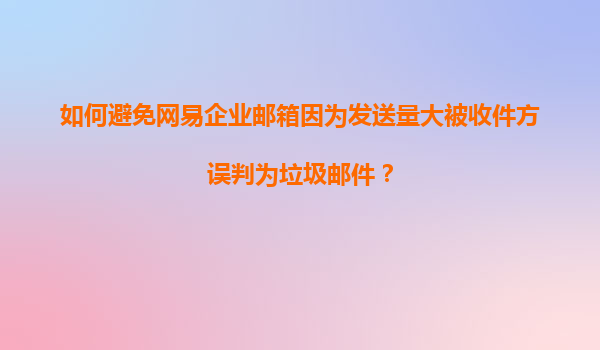 2025-11-11如何避免網(wǎng)易企業(yè)郵箱因?yàn)榘l(fā)送量大被收件方誤判為垃圾郵件? 在當(dāng)今數(shù)字化辦公環(huán)境中,企業(yè)郵箱是企業(yè)內(nèi)外溝通的重要工具。然而,發(fā)送大量郵件時(shí),容易被收件方服務(wù)器誤判為垃圾郵件(Spam),導(dǎo)致郵件被攔截或...