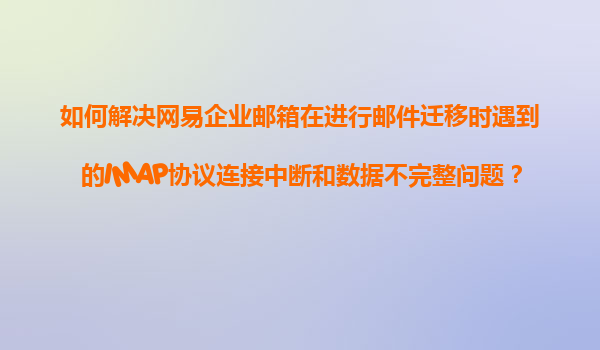 2025-11-09如何解決網(wǎng)易企業(yè)郵箱郵件遷移中的IMAP連接中斷與數(shù)據(jù)不完整問題 一、問題背景 在企業(yè)郵箱遷移過程中,使用IMAP協(xié)議時(shí)可能遇到兩類典型問題:一是連接頻繁中斷導(dǎo)致遷移失敗,二是遷移后數(shù)據(jù)不完整(如缺...
