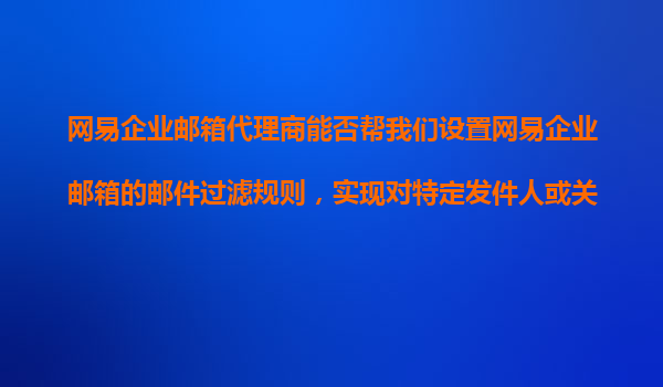 2025-11-09網(wǎng)易企業(yè)郵箱代理商如何幫您高效設(shè)置郵件過濾規(guī)則? 一、網(wǎng)易企業(yè)郵箱的郵件過濾功能概述 網(wǎng)易企業(yè)郵箱作為國內(nèi)領(lǐng)先的企業(yè)級(jí)通訊解決方案,提供了強(qiáng)大的郵件過濾系統(tǒng)。通過該功能,企業(yè)可以實(shí)現(xiàn)對(duì)特定發(fā)件人、關(guān)鍵...