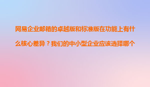 2025-11-09網(wǎng)易企業(yè)郵箱卓越版與標(biāo)準(zhǔn)版功能對(duì)比及中小企業(yè)選型指南 網(wǎng)易企業(yè)郵箱的核心優(yōu)勢(shì) 網(wǎng)易企業(yè)郵箱作為國內(nèi)頭部企業(yè)級(jí)郵件服務(wù)商,以其穩(wěn)定安全的服務(wù)、智能高效的辦公協(xié)同功能深受企業(yè)信賴。其核心優(yōu)勢(shì)體現(xiàn)在...
