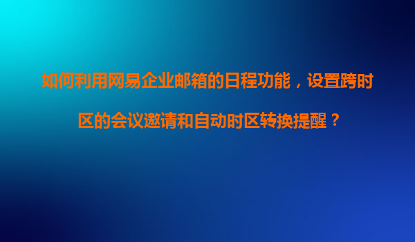 2025-11-09如何利用網(wǎng)易企業(yè)郵箱的日程功能高效管理跨時(shí)區(qū)會(huì)議 一、網(wǎng)易企業(yè)郵箱日程功能的優(yōu)勢(shì) 網(wǎng)易企業(yè)郵箱作為國內(nèi)領(lǐng)先的企業(yè)級(jí)郵件服務(wù),其日程管理功能在跨時(shí)區(qū)協(xié)作場景中具有顯著優(yōu)勢(shì): ...