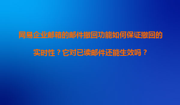 2025-11-09網(wǎng)易企業(yè)郵箱郵件撤回功能的實(shí)時(shí)性及適用場景解析 一、郵件撤回功能的實(shí)時(shí)性保障機(jī)制 網(wǎng)易企業(yè)郵箱的郵件撤回功能在設(shè)計(jì)時(shí)充分考慮了時(shí)效性與成功率,主要通過以下技術(shù)手段保障其高效運(yùn)行: 秒級(jí)服務(wù)器同步...