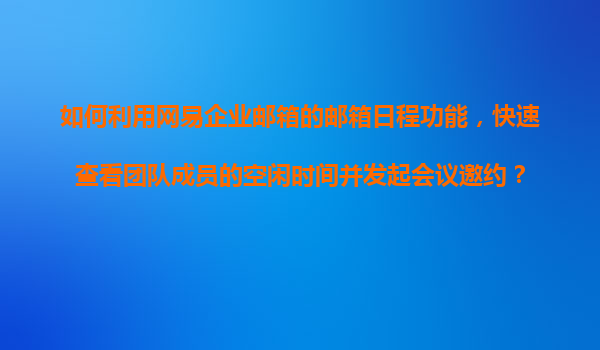 2025-11-08如何利用網(wǎng)易企業(yè)郵箱的郵箱日程功能,快速查看團(tuán)隊(duì)成員的空閑時(shí)間并發(fā)起會(huì)議邀約? 一、網(wǎng)易企業(yè)郵箱日程功能的核心價(jià)值 在團(tuán)隊(duì)協(xié)作中,高效安排會(huì)議是提升工作效率的關(guān)鍵。網(wǎng)易企業(yè)郵箱的日程功能,...