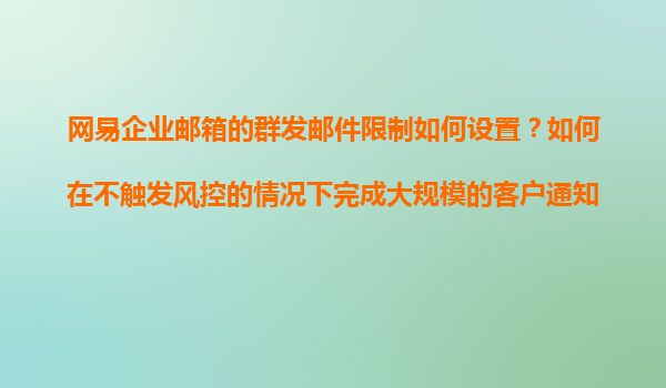 2025-11-08網(wǎng)易企業(yè)郵箱的群發(fā)郵件限制設(shè)置及大規(guī)模客戶通知策略 一、網(wǎng)易企業(yè)郵箱群發(fā)郵件的限制規(guī)則解析 網(wǎng)易企業(yè)郵箱為保障郵件系統(tǒng)的穩(wěn)定性和減少垃圾郵件風(fēng)險(xiǎn),對(duì)群發(fā)郵件設(shè)有明確限制: 單次發(fā)送上限:...