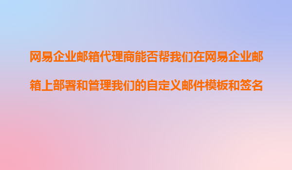 2025-11-08網(wǎng)易企業(yè)郵箱代理商:助力企業(yè)高效部署與管理自定義郵件模板和簽名 引言 在現(xiàn)代企業(yè)溝通中,電子郵件的專業(yè)性和規(guī)范性直接影響企業(yè)形象和業(yè)務(wù)效率。統(tǒng)一的自定義郵件模板和簽名不僅能夠提...