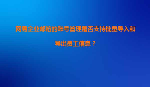 2025-11-20網(wǎng)易企業(yè)郵箱的賬號管理是否支持批量導(dǎo)入和導(dǎo)出員工信息? 一、網(wǎng)易企業(yè)郵箱的批量操作功能解析 網(wǎng)易企業(yè)郵箱作為國內(nèi)領(lǐng)先的企業(yè)通信解決方案,其賬號管理功能完善且高效。針對用戶關(guān)心的批量導(dǎo)入...