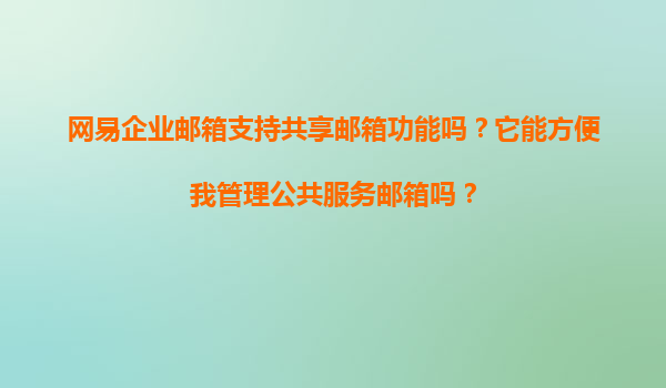 2025-11-20網(wǎng)易企業(yè)郵箱的共享郵箱功能解析 網(wǎng)易企業(yè)郵箱作為國內(nèi)領(lǐng)先的企業(yè)級郵件服務(wù)提供商,其共享郵箱功能是專為團(tuán)隊協(xié)作設(shè)計的實用工具。該功能允許企業(yè)將特定郵箱(如公共服務(wù)郵箱、客服郵箱等)開放給多名成員共同...