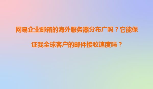 2025-11-20網(wǎng)易企業(yè)郵箱海外服務(wù)器分布與全球郵件接收性能解析 一、網(wǎng)易企業(yè)郵箱海外服務(wù)器分布概況 作為中國領(lǐng)先的企業(yè)郵箱服務(wù)提供商,網(wǎng)易企業(yè)郵箱近年來持續(xù)加碼海外服務(wù)器布局。目前已在北美(美國東西海岸...