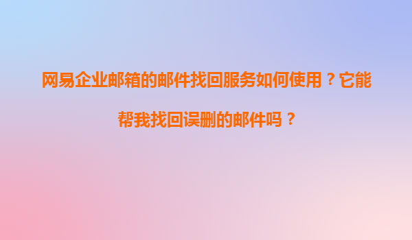 2025-11-20網(wǎng)易企業(yè)郵箱郵件找回服務(wù)詳解及誤刪郵件恢復(fù)指南 郵件找回服務(wù)的重要性 在日常工作中,郵件作為重要的溝通工具,難免會(huì)遇到誤刪除或丟失的情況。網(wǎng)易企業(yè)郵箱提供的郵件找回服務(wù),...